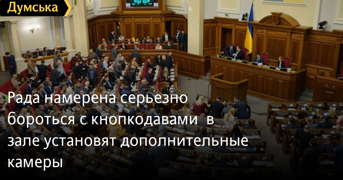 Рада намерена серьезно бороться с кнопкодавами – в зале установят дополнительные камерыВерховная Рада планирует установить дополнительные камеры для борьбы с кнопкодавством во время голосования. Об этом во время заседания парламента заявил спикер Дмитрий Разумков. Он отметил, что дал поручение профильному комитету изучить факты неперсонального голосования, которые периодические имеют место во время голосований. «Мы даже приняли закон, который предусматривает уголовную ответственность, но он не работает. Поэтому договорились до 15 января разработать изменения в законодательстве, которые бы сделали более жесткой ответственность за неиндивидуальное голосование. Это не мое предложение — это совместная позиция всех депутатских фракций», — заявил Разумков. Законопроект будут рассматривать одним из первых в новом году. Кроме того, в зале заседаний хотят установить дополнительные видеокамеры в тех местах, где их ранее не было — к примеру, в ложах. Также планируют следить за рассадкой нардепов и отключат «резервные» места от системы «Рада» — сейчас в парламенте есть 27 свободных мест, так как некоторых нардепов не смогли избрать, в том числе из-за оккупации Крыма и Донбасса. По состоянию на 18 декабря избранными являются 423 депутата из 450. Напомним, в начале 2020 года вступил в силу закон о наказании народных депутатов за кнопкодавство. Документ предусматривает штраф от 51 тыс. до 85 тысяч гривен. СМЕРТЬ РОСІЙСЬКИМ ОКУПАНТАМ! Помітили помилку? Виділяйте слова з помилкою та натискайте control-enter