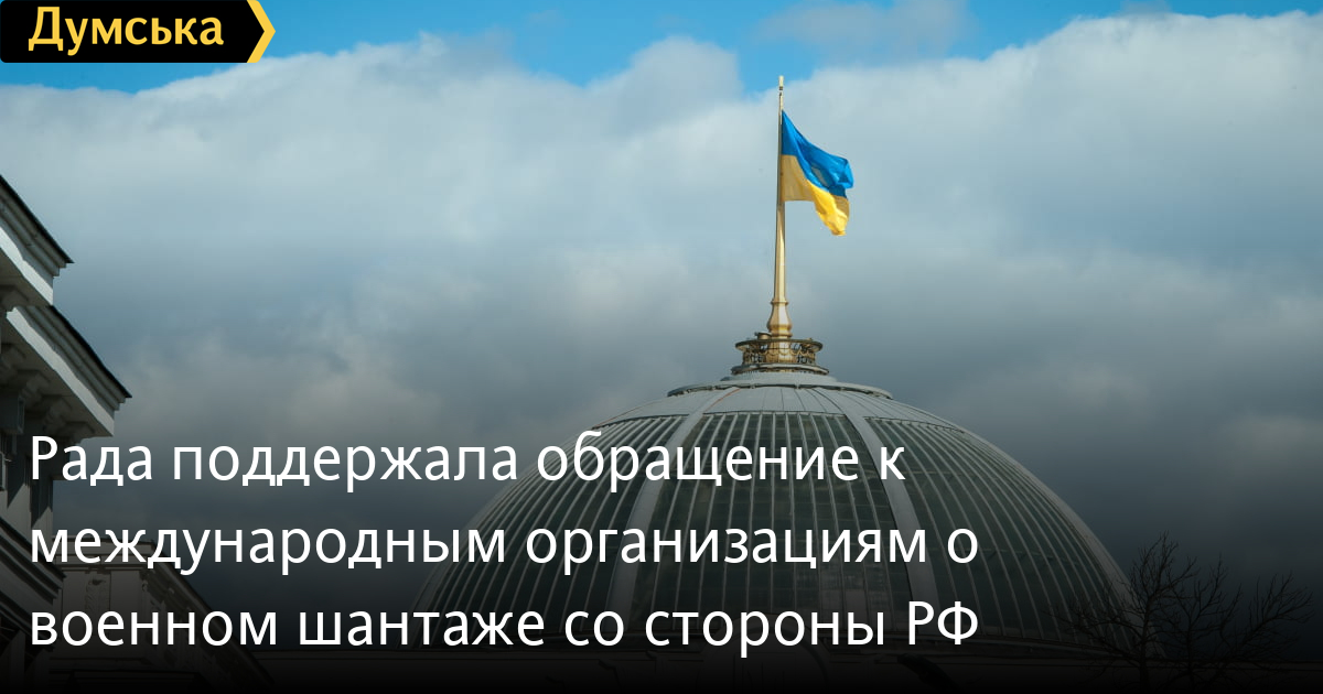Верховная Рада поддержала обращение к ряду международных организаций, включая ООН и Европейский парламент, в котором заявила о недопустимости военного шантажа со стороны Российской Федерации.