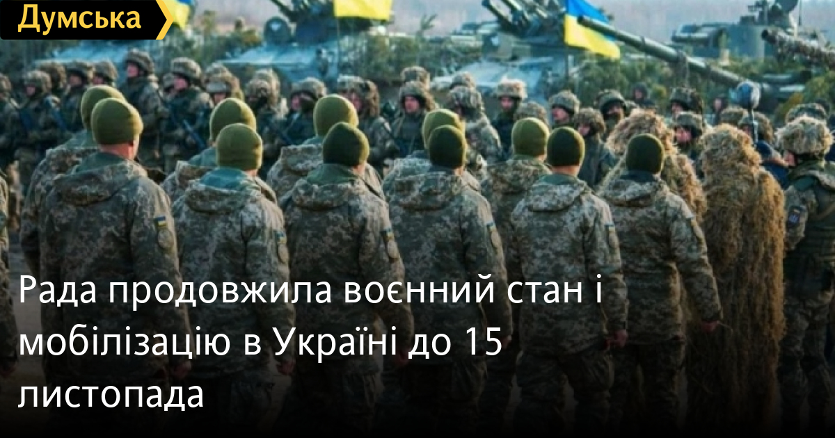 За продовження воєнного стану проголосували 347 народних депутатів, а за продовження мобілізації — 334 парламентарії.