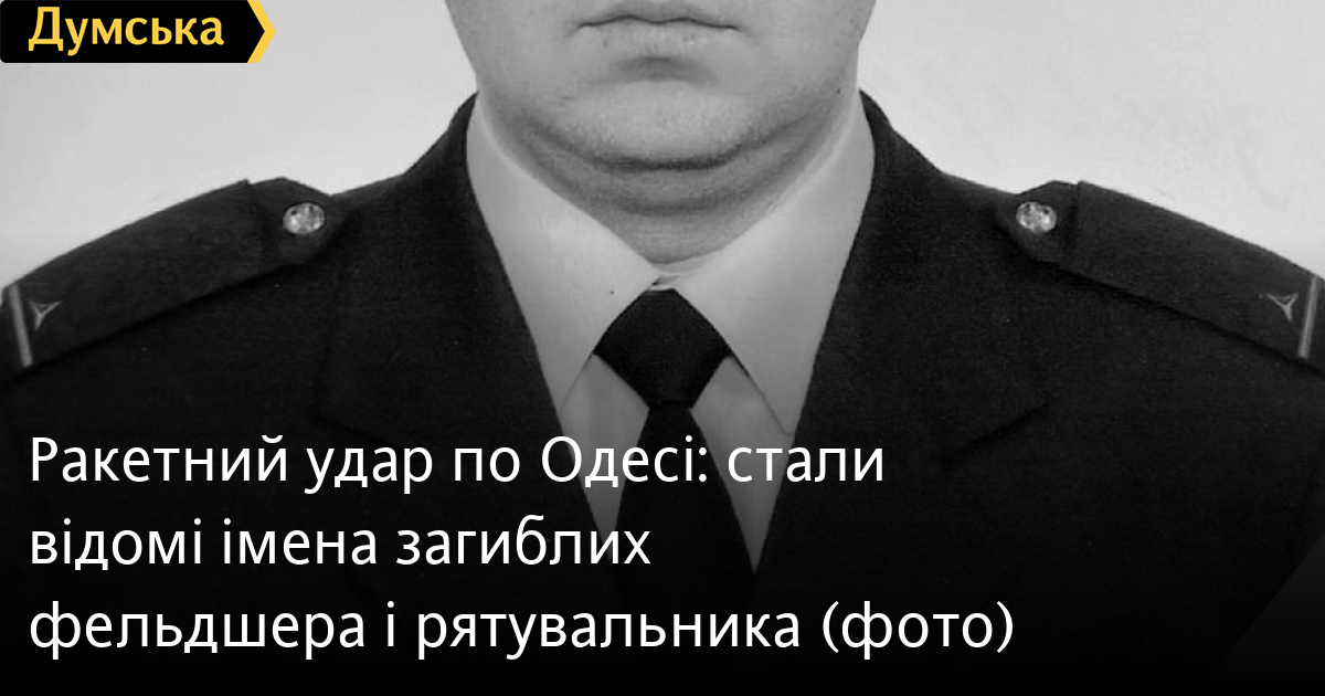 Імена загиблих під час обстрілу Одеси 15 березня рятувальника і медика назвали управління Держслужби з надзвичайних ситуацій і Центр екстреної медичної допомоги та медицини катастроф Одеської області.