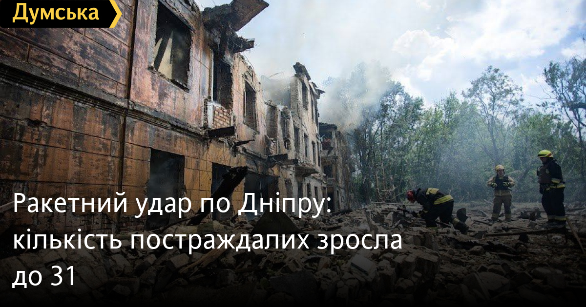 Кількість постраждалих унаслідок ракетного удару по Дніпру зросла до 31.