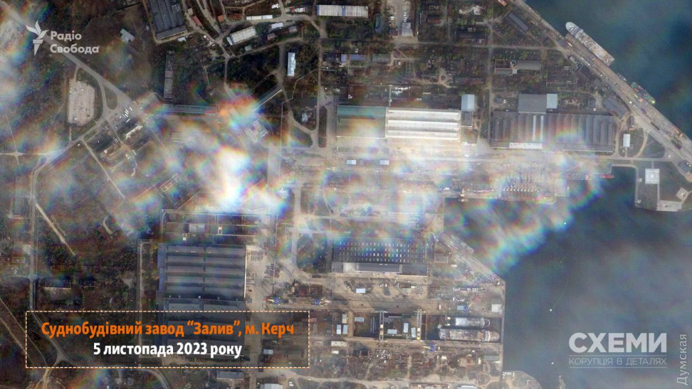 Фотографії корабля біля причалу підприємства, зроблені вранці 5 листопада супутником сервісу Planet Labs, опублікували «Схеми».