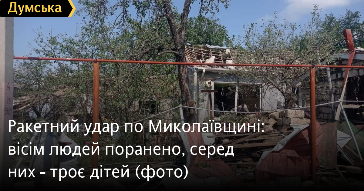 Вісім людей, серед яких троє дітей, отримали поранення в результаті ворожого удару по Вознесенську Миколаївської області.