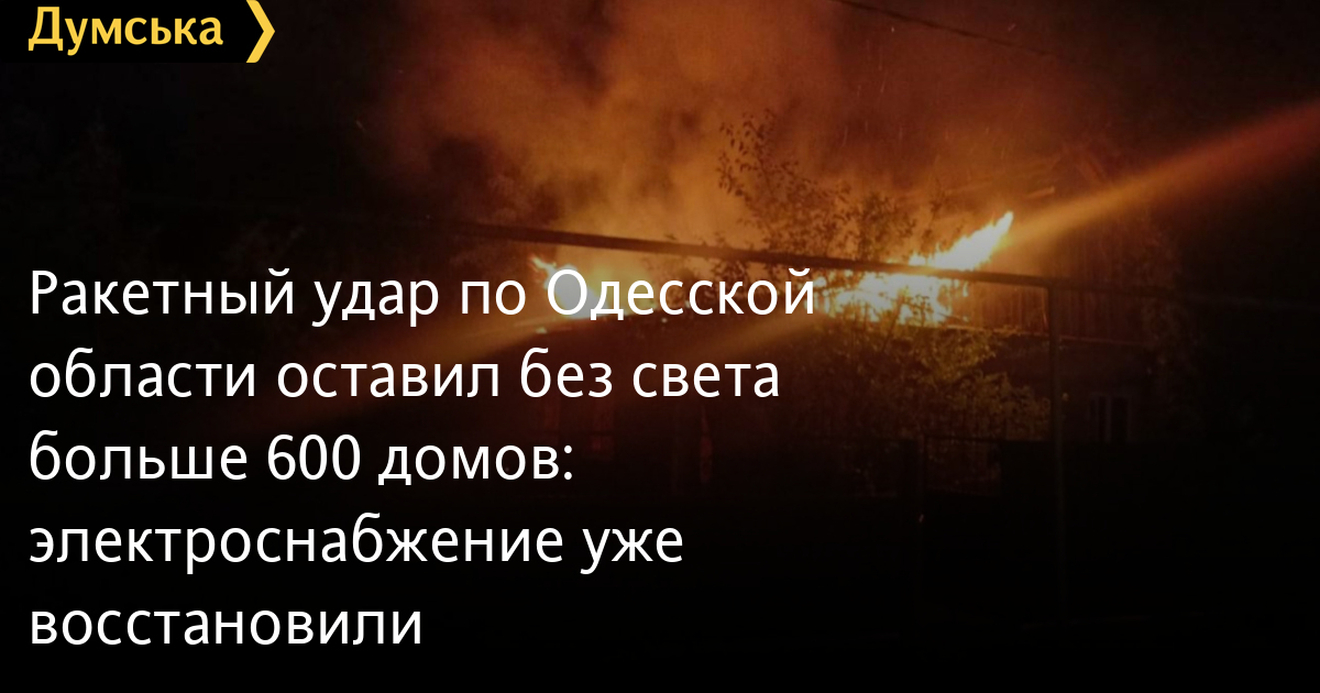 643 частных дома остались без света в результате ракетного удара, нанесенного российскими нацистами по Одесской области в ночь на 27 июня.