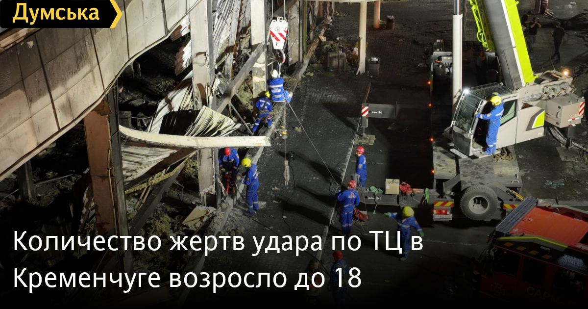 До 18 человек выросло число жертв ракетного обстрела торгового центра в Кременчуге.