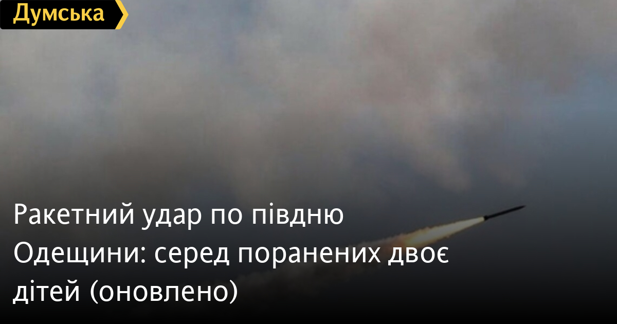 Ракетний удар по півдню Одещини: серед поранених двоє дітей (оновлено)Троє людей постраждали внаслідок ракетного удару по півдню Одещини сьогодні вдень. Серед поранених — двоє дітей 11-ти та 14-ти років, повідомили в обласній військовій адміністрації. Стан усіх постраждалих оцінюється як середньої тяжкості, їм надають необхідну медичну допомогу. Дані щодо інших постраждалих уточнюються. Міністр розвитку громад та територій України Олексій Кулеба уточнив, що ворог пошкодив адміністративну будівлю залізничної станції. На місці працюють всі екстренні служби, наслідки атаки ліквідовуються. ОНОВЛЕНО 16:48 За даними голови ОВА Олега Кіпера, кількість постраждалих зросла до чотирьох людей. Стан трьох із них, зокрема, двох дітей — середньої тяжкості. Ще один постраждалий перебуває у тяжкому стані. СМЕРТЬ РОСІЙСЬКИМ ОКУПАНТАМ! Помітили помилку? Виділяйте слова з помилкою та натискайте control-enter Новини по цій темі: |