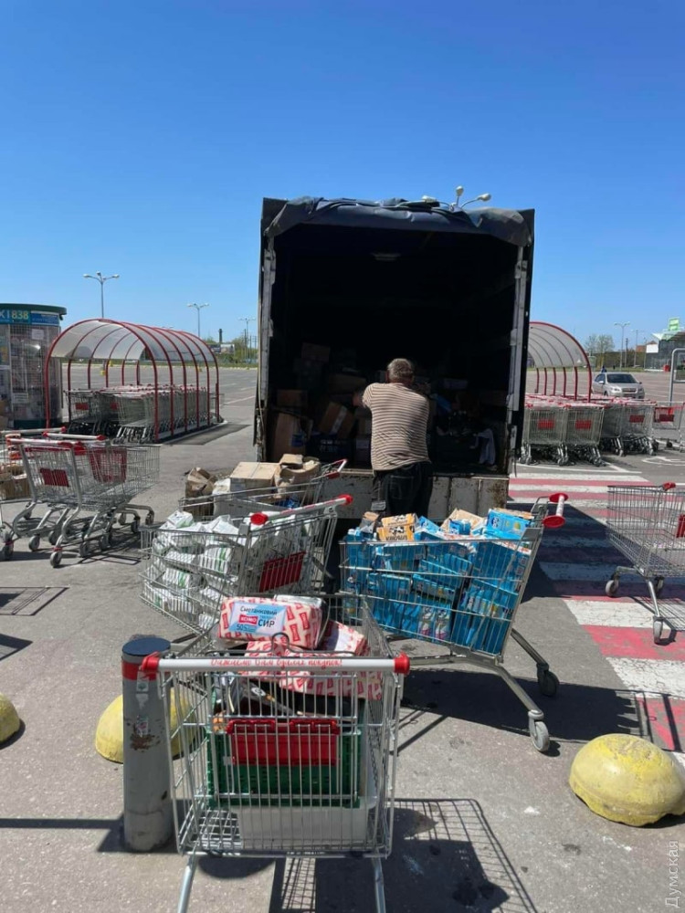 «Спасибо «Ашану» — получили продукты, которые развозим самым незащищенным жителям Красносельской громады», — пишет Архирий.