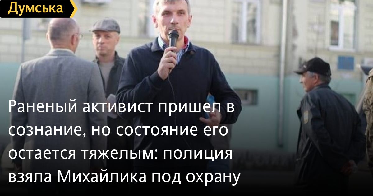 Активист Олег Михайлик, раненный вчера вечером неизвестным, пришел в сознание, но его состояние по-прежнему остается крайне тяжелым.
