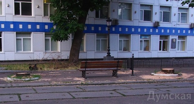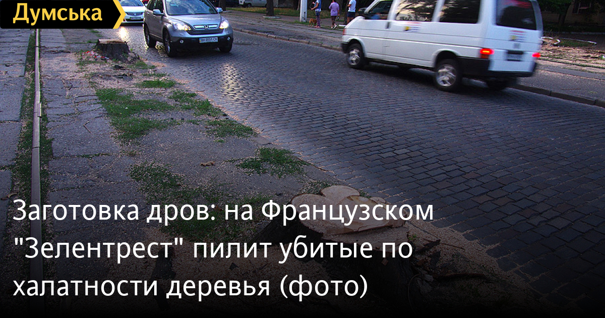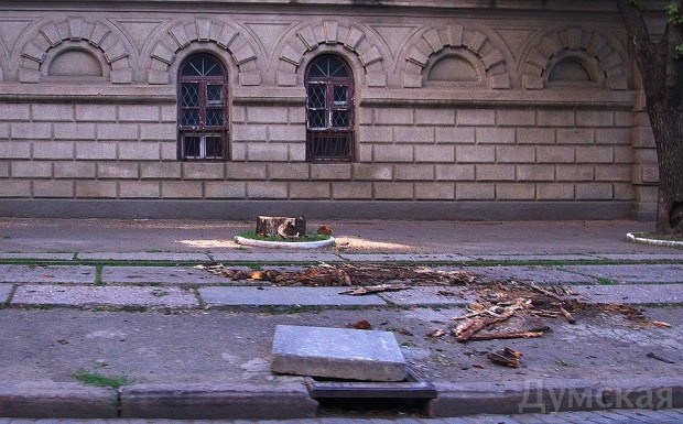 На Французском бульваре работники «Горзелентреста» пилят деревья, погибшие по их же вине.