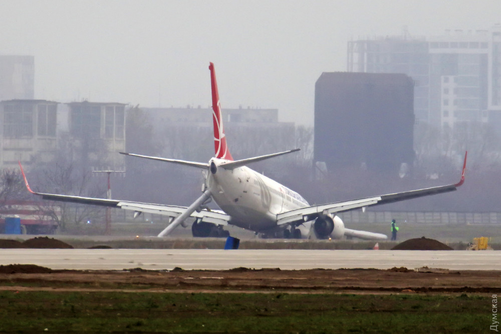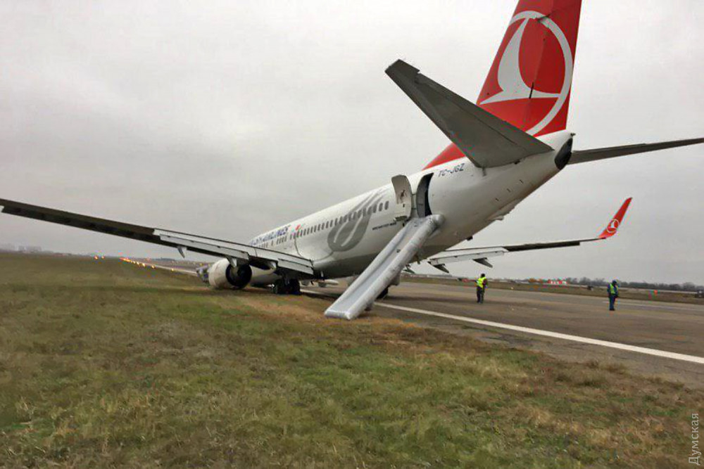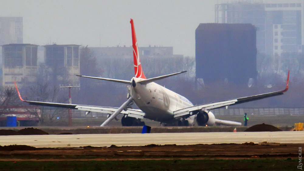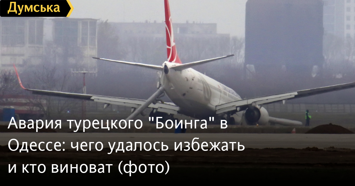 Серьезное авиационное происшествие, случившееся вечером 21 ноября в международном аэропорту «Одесса» с самолетом турецкой авиакомпании Turkish Airlines, заставило многих по-другому посмотреть на самые простые вопросы авиационной безопасности. Многие комментаторы отмечают, что пассажиры рейса только чудом остались живы: выкатись «Боинг» полностью с полосы на грунт, кроме носовой, то могли сломаться и основные опоры лайнера, что привело бы к возникновению пожара, чреватого сами знаете чем. Вокруг этого инцидента мгновенно стали возникать различные слухи и домыслы, поэтому «Думская» решила разобраться в произошедшем. Итак, в четверг, 21 ноября, самолет Boeing 737-8F2 авиакомпании Turkish Airlines с бортовым регистрационным номером TC-JGZ (серийным 35739/2654) выполнял регулярный рейс по маршруту Стамбул – Одесса. При посадке с сильным боковым ветром (тем самым, который вынес на пляж Дельфин танкер «Делфи») лайнер сломал переднюю стойку шасси и едва не выкатился за пределы взлетно-посадочной полосы. После полной остановки воздушного судна пилоты задействовали систему аварийного оставления самолета по надувным трапам. По счастливой случайности никто из 134 пассажиров не пострадал. Сразу после аварии одесский аэропорт закрылся. Полеты возобновили поздним вечером 22 ноября, после того, как «Боинг» смогли переместить на одну из стоянок аэропорта. Мы побеседовали с авиационными специалистами, принимавшими участие в выяснении обстоятельств происшествия, но наши выводы никоим образом нельзя считать официальной позицией Госавиаслужбы Украины. Это всего лишь журналистская работа, которая, надеемся, поможет читателям разобраться в причинах случившегося. СЕКРЕТНОСТЬ Надо сказать, что сразу после аварии турецкая сторона постаралась засекретить всю информацию о ЧП. По нашим данным, параметры посадки и сведения о действиях экипажа не смогла получить даже государственная комиссия, прибывшая из Киева. Так называемые «черные ящики» и речевые самописцы самолета были демонтированы — в нарушение украинского законодательства и правил Международной организации гражданской авиации (ICAO). Пилоты тоже не стали дожидаться разбирательства. Не дав никаких объяснений украинским властям, они сразу после аварии выехали в Херсон, откуда первым же рейсом улетели на родину. По всей видимости, Turkish Airlines не очень заинтересована в расследовании инцидента и не шибко уважает украинские законы. ОБСТОЯТЕЛЬСТВА Что же реально произошло в одесском аэропорту вечером 21 ноября? Попытаемся восстановить хронологию событий. Погода в Одессе в тот день была ветреной. С самого утра дул сильный, 9-12 м/с с порывами до 17 м/с, восточный «боковик». В таких погодных условиях диспетчеры рекомендовали для взлета и посадки курс 160 (в сторону моря). Летчики многих авиакомпаний испытывали трудности, но на запасной аэродром, в Кишинев, ушли только пилоты МАУ, прилетевшие из Шарм-эш-Шейха. К вечеру ситуация не улучшилась. Метеосводка аэропорта на 20:30 информировала, что над воздушными воротами города дует восточный ветер силой 11 м/с с порывами до 17, температура воздуха +2. В 20:23 приземлился борт МАУ из Борисполя. На первый взгляд, этот факт не имеет отношения к делу, но это только на первый взгляд. Дело в том, что посадку совершил «Боинг» такого же типа, как турецкий, а погодные условия, в том числе направление и с