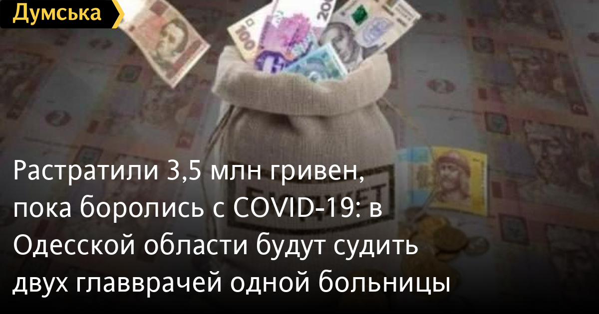 За растрату 3,5 млн грн, выделенных для борьбы с COVID-19, будут судить двух руководителей больницы в Одесской области.