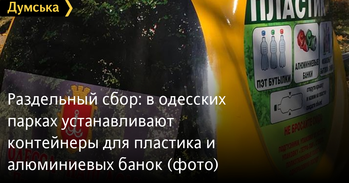 Специальные контейнеры для пластика и алюминиевых банок устанавливают в парках Одессы.