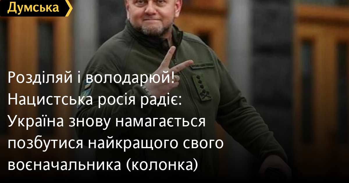 Розділяй і володарюй! Нацистська росія радіє: Україна знову намагається позбутися найкращого свого воєначальника (колонка)