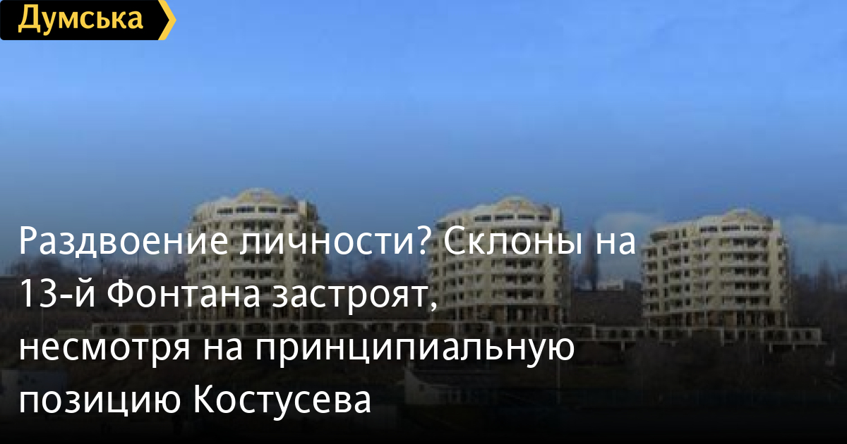 На одном и том же заседании горисполкома мэр Одессы Алексей Костусев заявил своей принципиальной позиции по поводу склонов, которые, дескать, не даст застраивать никому и никогда, и… проголосовал за строительство высотного гостиничного комплекса на склонах в районе 13-й станции Большого Фонтана.