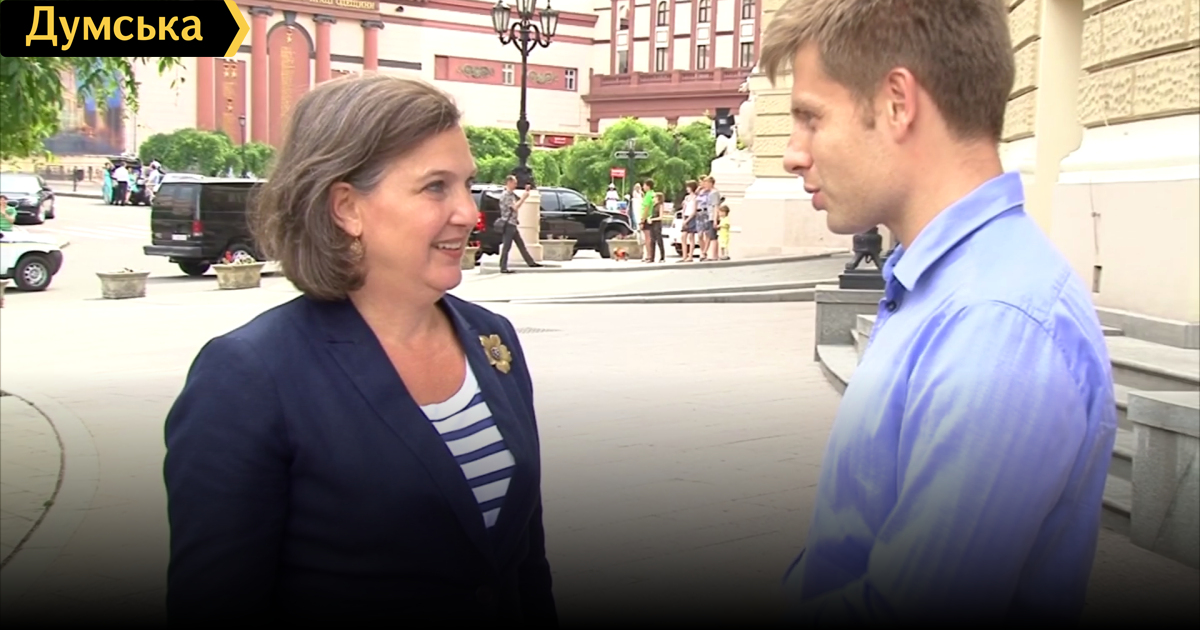 Виктория Нуланд рассказала Алексею Гончаренко о своем посещении Одессы, участии Путина в праздновании в Нормандии, поставках французских «Мистралей» России и оскорблении Путиным Хиллари Клинтон.