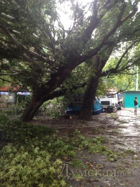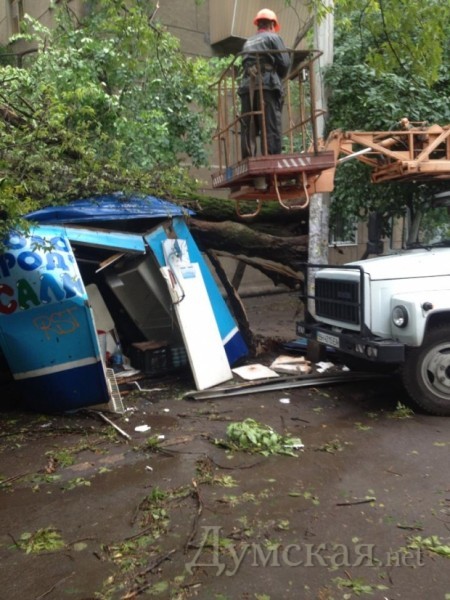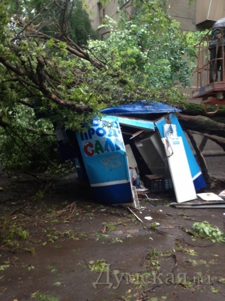 В Одессе упавшее дерево раздавило будку с йогуртом: пострадала продавец
