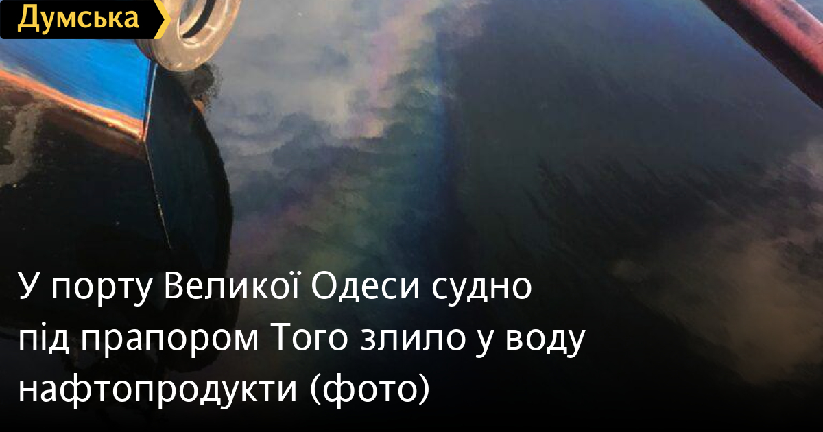 У порту Великої Одеси судно під прапором Того злило у воду нафтопродукти🤬 402 😱 66 👍 21 😢 17 👎 6 💩 3 ❤ 2 🔥 2 Розлив нафтопродуктів зафіксували в Сухому лимані, на берегах якого розташований порт Чорноморськ. Їх скинуло судно EXCALIBUR, яке ходить під прапором Того, повідомили в державній інспекції з охорони навколишнього природного середовища Південно-західного округу. Співробітники відомства обстежили поверхню води і відібрали проби. У лабораторії встановили перевищення граничної концентрації вмісту нафтопродуктів у 70 разів. Площа забруднення — 172,5 тис. кв. метрів. Зараз інспекція оцінює збитки, завдані природі. СМЕРТЬ РОСІЙСЬКИМ ОКУПАНТАМ! Помітили помилку? Виділяйте слова з помилкою та натискайте control-enter |