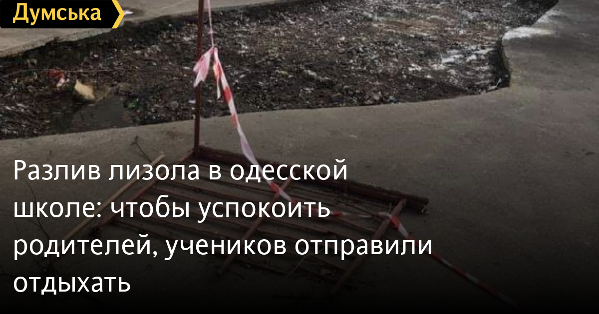 Разлив лизола в одесской школе: чтобы успокоить родителей, учеников отправили отдыхатьОдесская школа №24, где на прошлой неделе эвакуировали учащихся из-за разлитого лизола, ушла на каникулы до 5 марта. Как рассказали «Думской» в департаменте образования и науки Одесского горсовета, занятия пришлось прервать из-за обеспокоенных родителей, которые упорно не хотели верить, что никакой опасности для детей в учебном заведении нет. «Решение о введении каникул было принято школьным советом, коллегиально, чтобы родители не нервничали, — говорит директор департамента Елена Буйневич. — На самом деле, находиться в школе абсолютно безопасно, все замеры воздуха показали, что ничего опасного нет». По ее словам, в школе, действительно, все еще присутствует не очень приятный запах, но он не несет вреда для здоровья. Напомним, ЧП произошло в прошлую пятницу. Технический работник нес банку с лизолом в подвал для утилизации, но по дороге выронил ее. Запах от разлитого химического вещества был настолько едким, что из школы пришлось эвакуировать всех учащихся, а на месте разлива удалили участок асфальта. СМЕРТЬ РОССИЙСКИМ ОККУПАНТАМ! Заметили ошибку? Выделяйте слова с ошибкой и нажимайте control-enter