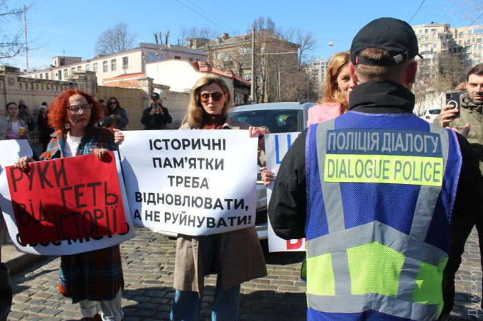 Битва за Французский бульвар: мэрия разрывает договор аренды, а на защиту архитектуры вышла даже секс-коучРазорвать договор аренды земли на Французском бульваре, 10, где накануне, намеренно повредили памятник архитектуры, готовится Одесская мэрия. Свою позицию обозначили областные администрация и прокуратура, а горожане уже перекрывают движение в знак протеста. Всего человек 50, и буквально на пару минут, но все же. Ваша редакция собрала в один материал все о позиции горсовета, ОВА и протестующих, а также о том, кто же возглавил пусть и не многочисленный, но все же пикет. Ну и куда же без инсайдов, как это скандал повлияет на одесские расклады. С утра стало понятно, что в мэрии настроены решительно. Тут уже без шуток и иронии. Директор юридического департамента Инна Поповская заявила, что механизм влияния у горсовета есть. «Департаменту архитектуры, градостроительства и земельных ресурсов, который должен контролировать выполнение условий договора аренды земли, необходимо рассмотреть нарушения требований соглашения. И подготовить документы для подачи иска о расторжении договора аренды земли», — пояснила чиновница. Немногим позже прямо возле пострадавшего здания начался пикет. На него пришли от 50 до 70 (по разным подсчетам) человек. Лидером стала местная жительница Карина Чебан. Еще вчера по пабликам неслась информация о сборе, которую распространяла, на минуточку, секс-коуч (некая Юлия Гайворонская). Ее сторис завирусилась. «На месте зданий завода можно устроить арт-зону, раскрасить здания, облагородить территорию, сделав ее доступной для всех одесситов, создав рест-зону, парк. Не так уж много у нас осталось мест с постройками XIX века. Застраивая такие примечательные и красивые места, мы получаем безликий город. Одесса должна сохранить свое лицо. Альперин и Мороховский, стоящие за этой схемой, совершают преступление против одесситов», — рассказала Чебан «Думской». В какой-то момент толпа митингующих вышла на дорогу и перегородила движение по Французскому бульвару. Полиция диалога уговорила митингующих уйти с проезжей части. Однако организатор Карина была бескомпромиссна и осталась посреди мостовой. Тогда копы обнесли ее предупреждающими конусами. После этого женщину оставили в покое. Около получаса простояла она на своем посту вместе с полицейскими, которые в меру сил регулировали движение. Отреагировали на скандал и представители государственной власти. Прокуратура открыла уголовное производство по статье о незаконном уничтожении или повреждение объектов культурного наследия (ч. 2 ст. 298 УК Украины), сообщили «Думской» в пресс-службе ведомства. В рамках расследования проверяется информация о проведении в ночь на 24 марта строительных работ с использованием специальной техники. «Обратились с ходатайством в суд о проведении осмотра места происшествия. Сейчас прокуроры ожидают решения, чтобы выйти со специалистами по культурному наследию на объект», — говорится в официальном сообщении. В Одесской ОВА тоже поспешили отчитаться о проделанной работе. Профильный департамент, выдал предписание о немедленном прекращении работ и обязал предоставить научно-проектную документацию об их проведении. Кроме того, обладминистрация вынесла постановление о применении к владельцу финансовых санкций: за невыполнение требований о