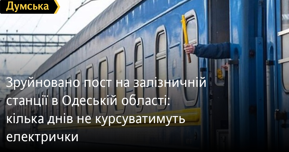 Зруйновано пост на залізничній станції в Одеській області: кілька днів не курсуватимуть електричкиЧерез атаку ворога тимчасово не курсуватимуть електрички. Розтрощено пост на одній зі станцій, повідомив голова правління «Укрзалізниці» Олександр Петровський. Осколкове поранення отримала сигналістка, її з легкими травмами доставили до лікарні. З 19 и по 22 грудня в розклад приміських поїздів внесено зміни. Тимчасово не курсуватимуть: 19 та 20 грудня №6208 Одеса-Головна (06:05) — Роздільна 1 (07:45) 19, 20, та 21 грудня №6254 Одеса-Головна (10:50) — Подільськ (14:42) 20, 21 та 22 грудня №6273 Помічна (06:20) — Подільськ (11:27) Скористатися можна альтернативними маршрутами: №6252 Одеса-Головна (08:30) — Роздільна 1 (10:05) — Вапнярка №6255 Вапнярка — Роздільна 1 (12:21) — Одеса-Головна (14:02) №6202 Одеса-Головна (16:10) — Роздільна 1 (17:50) №6272 Подільськ (06:58) — Помічна (11:37) №6275 Помічна (13:20) — Подільськ (18:11) №6259 Вапнярка — Подільськ (14:44) — Одеса-Головна (18:34) СМЕРТЬ РОСІЙСЬКИМ ОКУПАНТАМ! Помітили помилку? Виділяйте слова з помилкою та натискайте control-enter |