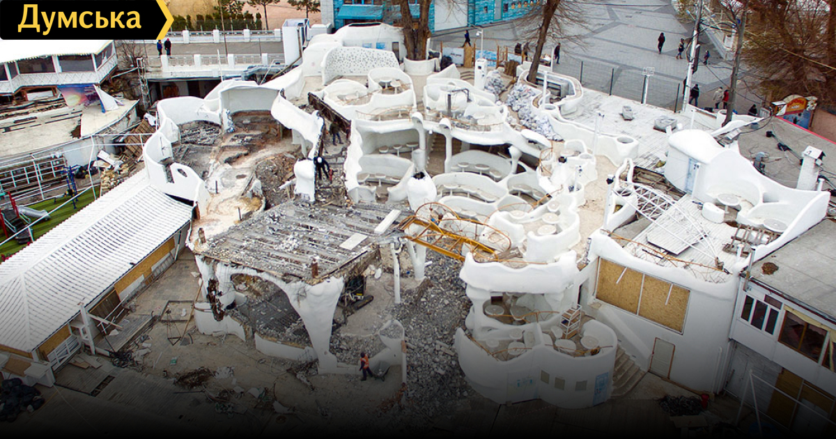 Корреспонденты «Думской» с помощью коптера зафиксировали разрушения, которыми сопровождается реконструкция летнего клуба на песке.