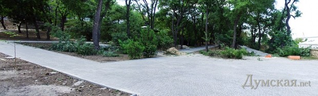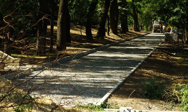 Здесь уже завершаются работы по укладке тротуарной плитки, облагораживаются склоны, восстанавливаются освещение и ливневая канализация, планируется установка системы автополива и реставрация фонтана. Также в парке появятся новые скамейки и урны.