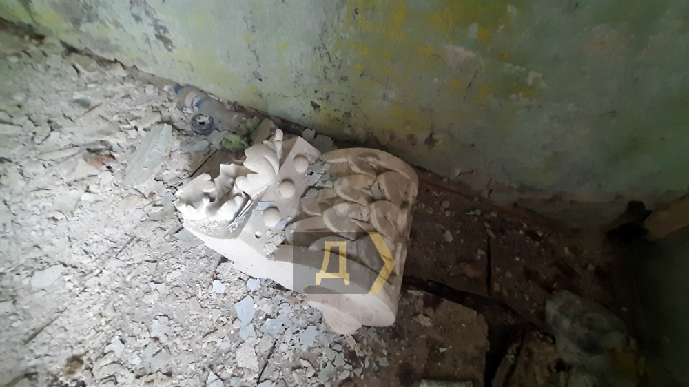 Кровля на памятнике во многих местах уже обвалилась. При этом здесь продолжают жить люди — две семьи «крепких орешков», которые не хотят отселяться.
