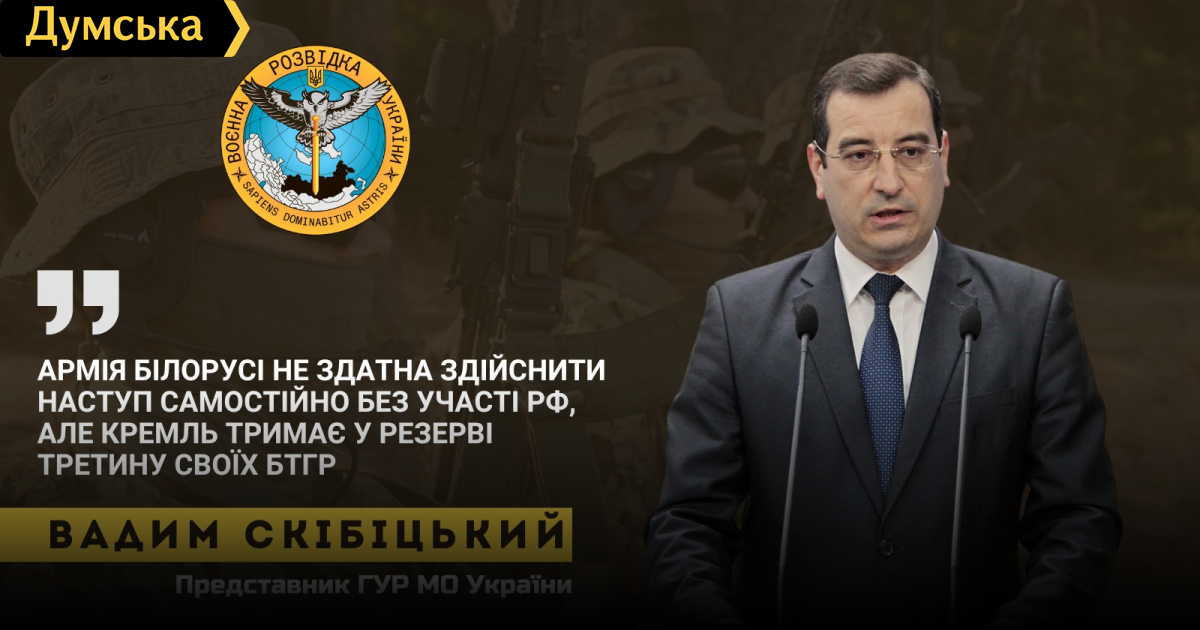 Разведка: Беларусь не готова к войне против Украины, россиянам для нового наступления из Беларуси понадобится не меньше месяцаУгрозы нового вражеского наступления с территории Беларуси в северные регионы Украины сейчас нет. Об этом сообщил спикер Главного управления разведки Минобороны Украины Вадим Скибицкий. Он отметил, что армия Беларуси не способна действовать самостоятельно, без участия россии, этот сценарий крайне маловероятен. У границы на ротационной основе находится 7 белорусских батальонно-тактических групп. Группировка составляет 4-6 тысяч военнослужащих. Отдельные белорусские спецподразделения проводят учения с российскими коллегами вблизи границ, однако это не вызывает опасений у нашей разведки – точно такие же учения проводились и в прошлые годы, и в последние месяцы, после начала полномасштабного вторжения. Если же руководство рф решится на новое наступление на Украину с севера, то для его подготовки понадобится не менее 3-4 недель, чтобы перебросить войска и создать ударные группировки. Сейчас в Беларуси находится около 1,5 тысяч российских военнослужащих. Это в основном военные летчики, военнослужащие ПВО и ракетных войск, а также некоторое количество спецназовцев. СМЕРТЬ РОСІЙСЬКИМ ОКУПАНТАМ! Помітили помилку? Виділяйте слова з помилкою та натискайте control-enter |