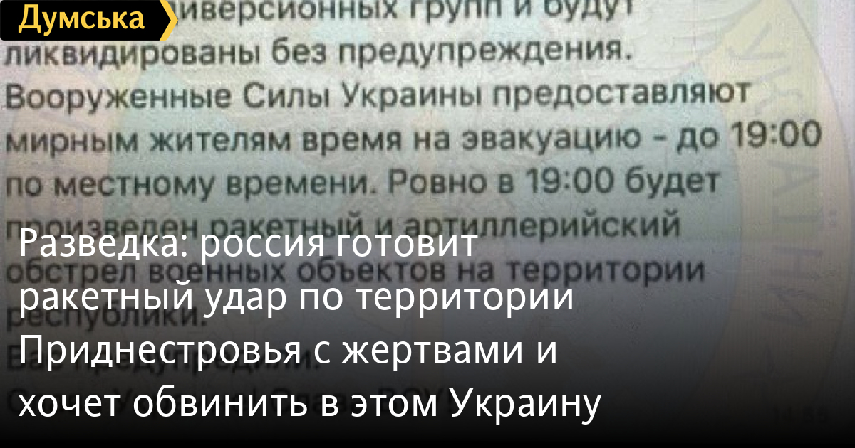 «Служба безопасности Украины настоятельно рекомендует провести эвакуацию гражданского населения в более безопасные регионы. Уверяем, Вооруженные Силы Украины не желают зла мирным жителям, однако оставшиеся в городах люди будут восприняты в качестве диверсионных групп и будут ликвидированы без предупреждения. Ровно в 19:00 будут проведены ракетные и артиллерийские обстрелы объектов на территории республики», — говорится в сообщениях.