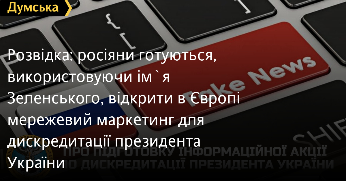 Адміністрація президента росії погодила створення нової структури, яка буде пов'язана зі спецслужбами. Мета проекту – дискредитувати президента України, верховного головнокомандувача Володимира Зеленського у країнах західної Європи.