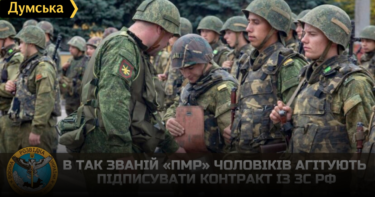 Разведка: в «приднестровье» мужчин агитируют подписывать контракты с российской армиейВ так называемой «приднестровской молдавской республике» развернулась широкая агитационная кампания по вступлению на контрактную службу в российскую армию. По данным Главного управления разведки Минобороны Украины, объявления о контрактной службе публикуются во всех СМИ «республики», распространяются по почте и размещаются в людных местах. Кроме того, безработным предлагают заключать контракт с армией рф, на предприятиях проводят сборы и уговаривают сотрудников к прохождению военной службы. Военнослужащих, которые проходят срочную службу, склоняют подписывать контракты. Также тираспольский военкомат начал призыв на военную службу граждан, которые закончили военные кафедры и были записаны в запас. СМЕРТЬ РОСІЙСЬКИМ ОКУПАНТАМ! Помітили помилку? Виділяйте слова з помилкою та натискайте control-enter |