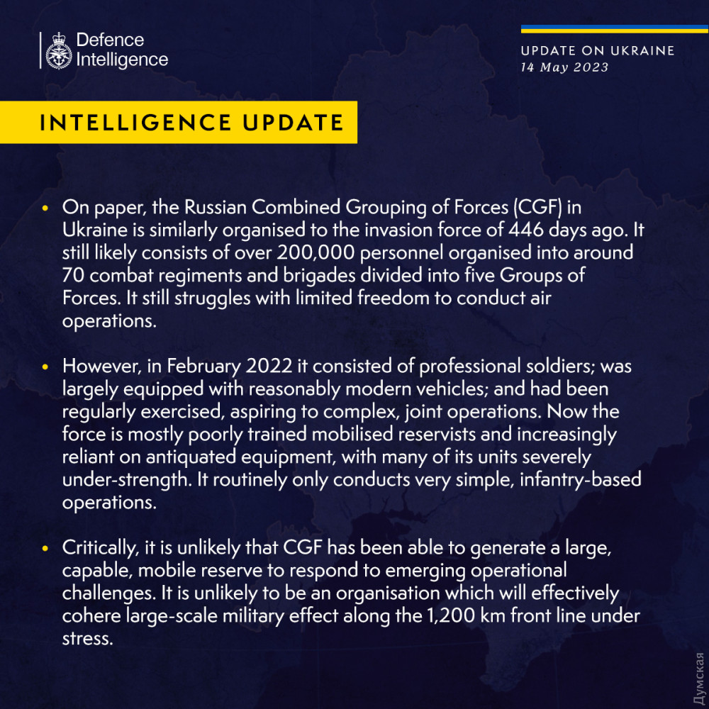 Розвідка Міністерства оборони Великої Британії повідомляє, що штат окупантів, як і раніше, не перевищує 200 тисяч солдатів і офіцерів, які розподілені в 70 полках і бригадах у складі п'яти бойових груп.