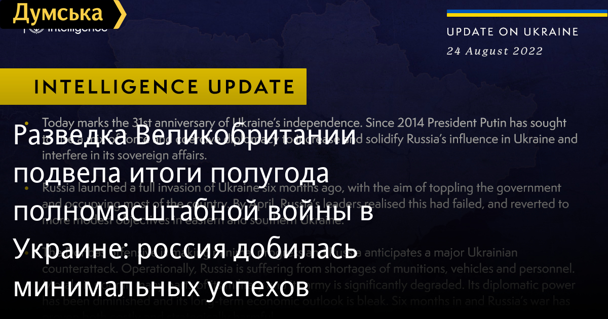 Розвідка Великобританії підбила підсумки півроку повномасштабної війни в Україні: росія досягла мінімальних успіхівПовномасштабне російське вторгнення в Україну, яке почалося 24 лютого, через півроку «обходиться все дорожче і веде до стратегічної поразки» країни-агресора. Про це повідомляється у звіті Секретної розвідувальної служби Великої Британії. Повідомляється, що після провалу спроб захопити всю Україну у квітні російське командування сконцентрувалося на менших оперативних завданнях на південному сході країни. Але це не дало істотних результатів. У MI6 констатують, що російський наступ на Донбасі має «мінімальний прогрес» і постійно піддається українським контратакам. «Росія страждає від нестачі боєприпасів, транспорту та особового складу. Мораль у військах погана і частина їхньої армії деградувала. Їхній дипломатичний вплив зменшився, а довгострокові економічні перспективи – похмурі», — зазначили у відомстві. СМЕРТЬ РОСІЙСЬКИМ ОКУПАНТАМ! Помітили помилку? Виділяйте слова з помилкою та натискайте control-enter |