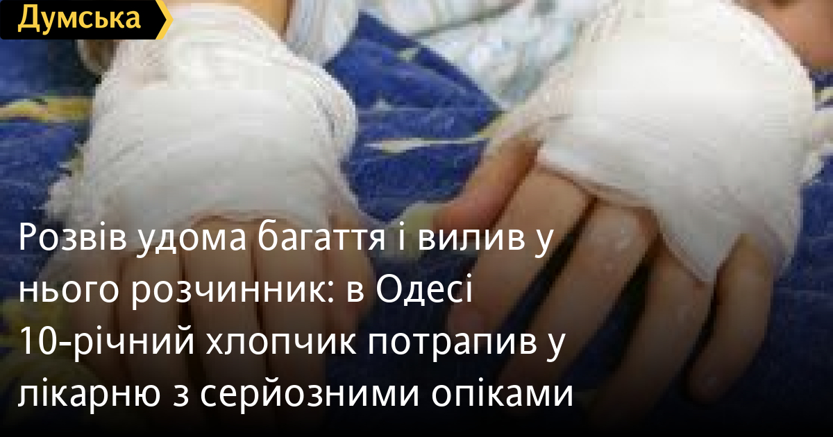 Розвів удома багаття і вилив у нього розчинник: в Одесі 10-річний хлопчик потрапив у лікарню з серйозними опікамиОпіки 15% тіла отримав 10-річний хлопчик, який просто у себе вдома розвів багаття і вилив у нього розчинник для фарби. Як стало відомо «Думській», зараз дитина в опіковому відділенні міськлікарні №10. Найбільше постраждали обличчя та обидві кисті. СМЕРТЬ РОСІЙСЬКИМ ОКУПАНТАМ! Помітили помилку? Виділяйте слова з помилкою та натискайте control-enter |