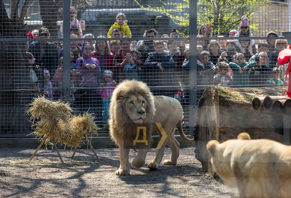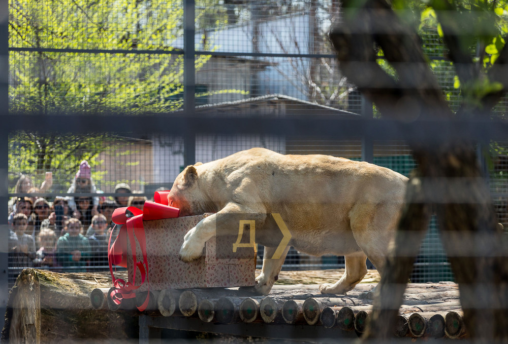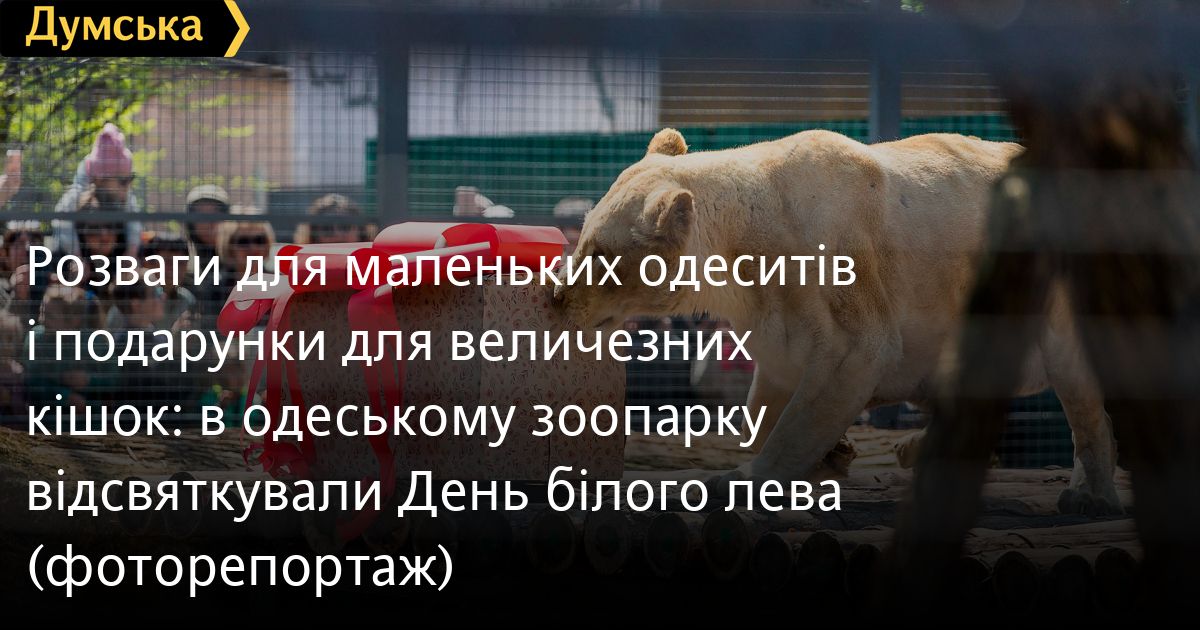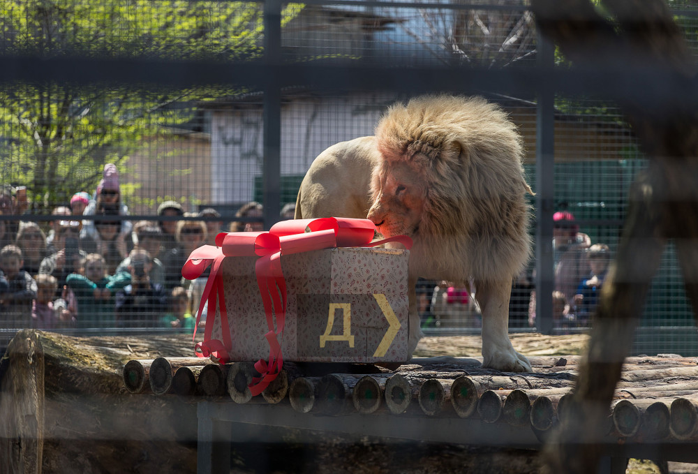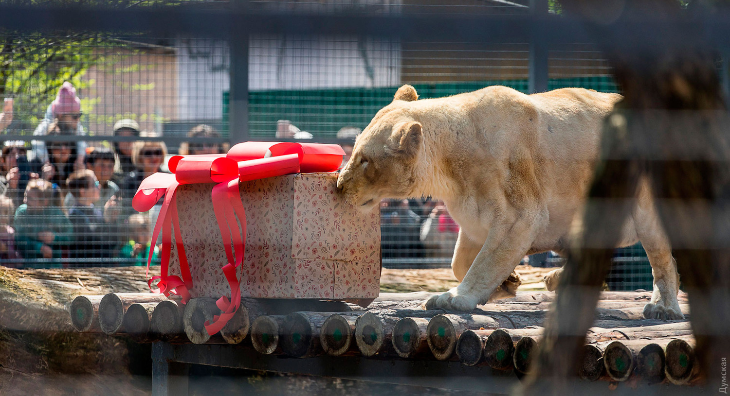 Незвичайне свято, День білих левів, відбулося сьогодні в одеському зоопарку — рівно рік тому пара трансваальських левів з харківського «Фельдман Екопарк», рятуючись від обстрілів, знайшла притулок у нашому місті.