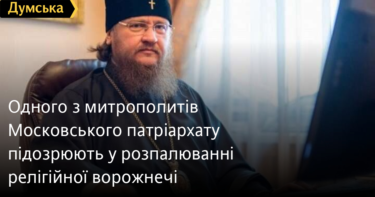 Підозру в розпалюванні ворожнечі та ненависті на релігійному ґрунті оголосили керівнику Черкаської єпархії Української православної церкви Московського патріархату Феодосію (Снєгирьову).