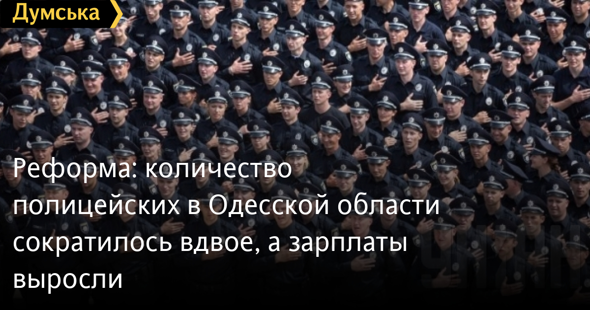 «Реформа: количество полицейских в Одесской области сократилось вдвое, а зарплаты выросли», этот вопрос нормальных людей меньше волнует, а вот во сколько раз выросла преступность или снизилась благодаря реформе это интересней.