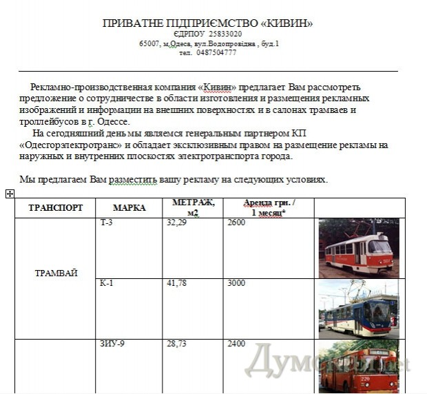 В связи с тем, что ЧП «Кивин» совершенно случайно зарегистрировано по тому же адресу, что и «Одесгорэлектротранс» — на Водопроводной, 1, - вопрос, почему бы коммунальному предприятию не сдавать рекламные площади без посредников, отпадает сам собой.