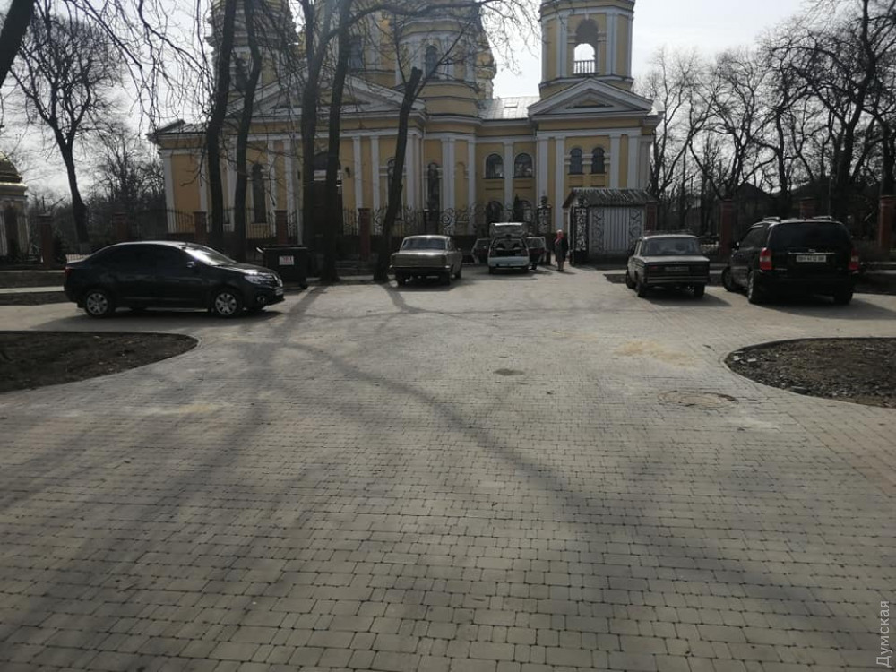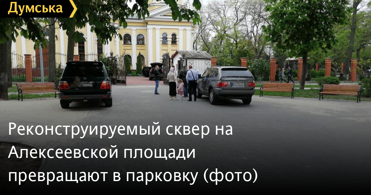«В сквере Алексеевский сейчас проводится реконструкция, но ее еще не успели закончить, как некоторые посетители и сотрудники храма устроили парковку прямо в сквере, на новенькой плитке. Паркуются как днем, так и поздно вечером, не обращая внимания на людей», — возмущается он.