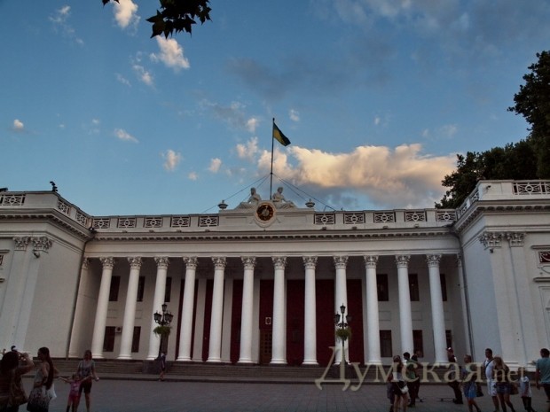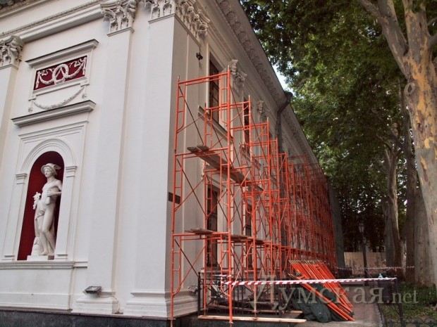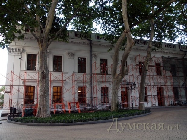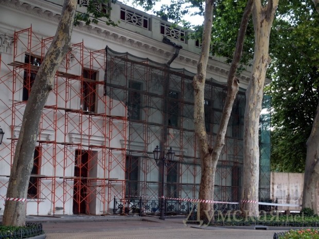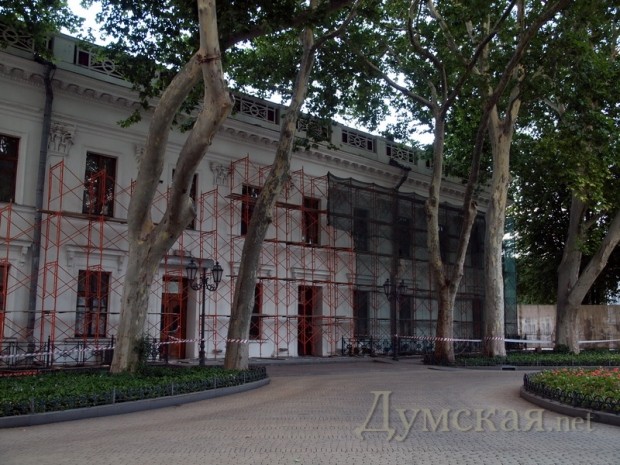 Возобновившаяся на днях реконструкция одесских фасадов, похоже, затронула и здание мэрии на Думской площади.