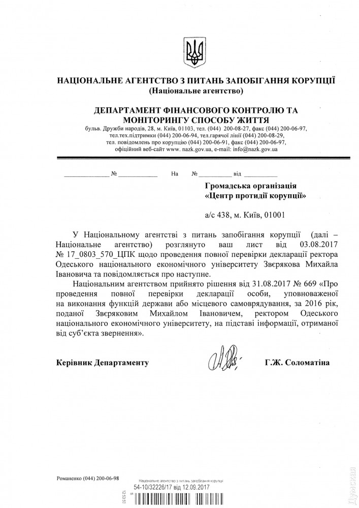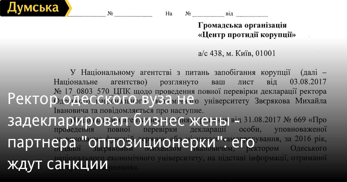 Национальное агентство по вопросам предотвращения коррупции проведет полную проверку декларации ректора Одесского экономического университета Михаила Зверякова.