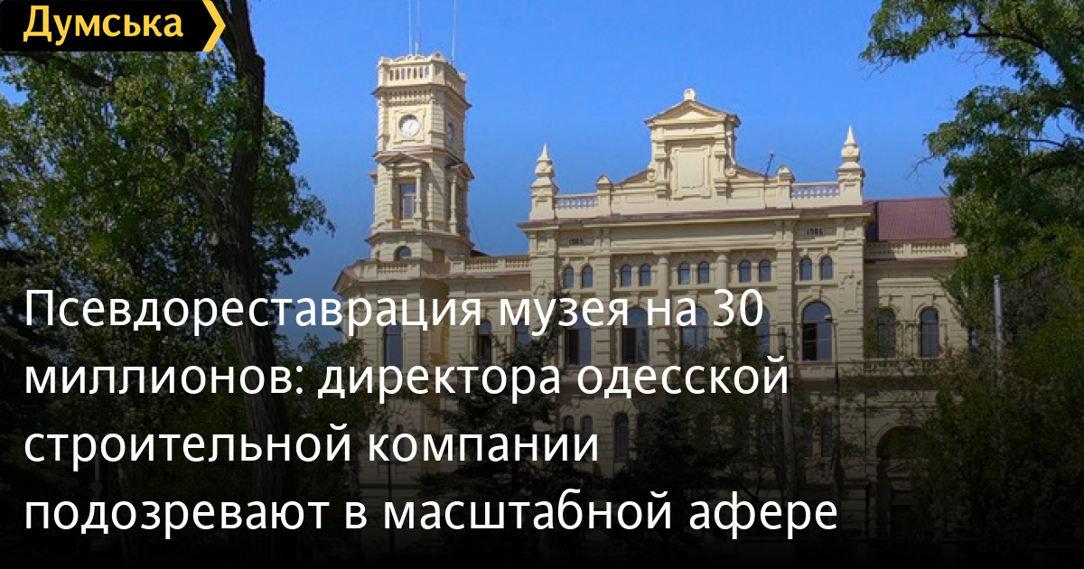 Псевдореставрація музею на 30 мільйонів: директора одеської будівельної компанії підозрюють у масштабній аферіДиректор одеської будівельної компанії привласнив майже 30 млн грн під час реставрації Херсонського обласного художнього музею ім. Шовкуненка. 62-річному чоловікові повідомили заочну підозру в заволодінні бюджетними коштами в особливо великих розмірах, повідомили в Нацполіції. Йдеться про компанію «Одесміськбуд», яка уклала договір на ремонт 2021 року. Загальну вартість робіт оцінили в 94 млн грн. За проміжний етап фірма відзвітувала актами й отримала за це понад 30 млн грн. Але після інспекції з'ясувалося, що в пам'ятці архітектури практично нічого не було зроблено, більшу частину суми привласнив директор будівельної фірми. Йому загрожує до 12 років за ґратами. На офіційній сторінці музею в соцмережах зазначили, що в підрядника не було досвіду виконання подібних реставрацій. А під час окупації будівля через неправильні роботи і зовсім опинилася без вікон. «Намірів зберегти оригінальні деталі споруди вони теж не мали. Уявляєте, хотіли просто збити, знищити унікальну ліпнину, замінивши якимось декором із пінопласту. Понад півсотні вікон були фактично виведені з ладу, бо підрядник передчасно виламав у вікнах замки і ручки. Це не мали права робити до часу заміни вікон наприкінці робіт, бо такі дії несуть для будівлі загрозу руйнування від дощу та снігу», — йдеться в повідомленні. Зазначимо, «Одесміськбуд» зареєстрована в Одесі 2016 року. З 2021-го директором значиться дехто Володимир Маляров. Компанія з 2019 року займалася ремонтно-реставраційними роботами зі зміцнення фундаментів одеського центру дитячої та юнацької творчості «Дивосвіт», що на Спиридонівській, 10. Це пам'ятка архітектури місцевого значення, відома як Прибутковий будинок Фріца. Ремонт будівлі з 20 млн виріс майже до 50 млн. У 2023 році фірмі з міського бюджету виділили ще майже 10 млн грн на зміцнення того ж фундаменту. У 2023 році «Одесміськбуд» займалася ще капітальними ремонтами укриттів в одеських школах. Після цього тендери компанія не вигравала. СМЕРТЬ РОСІЙСЬКИМ ОКУПАНТАМ! Помітили помилку? Виділяйте слова з помилкою та натискайте control-enter |