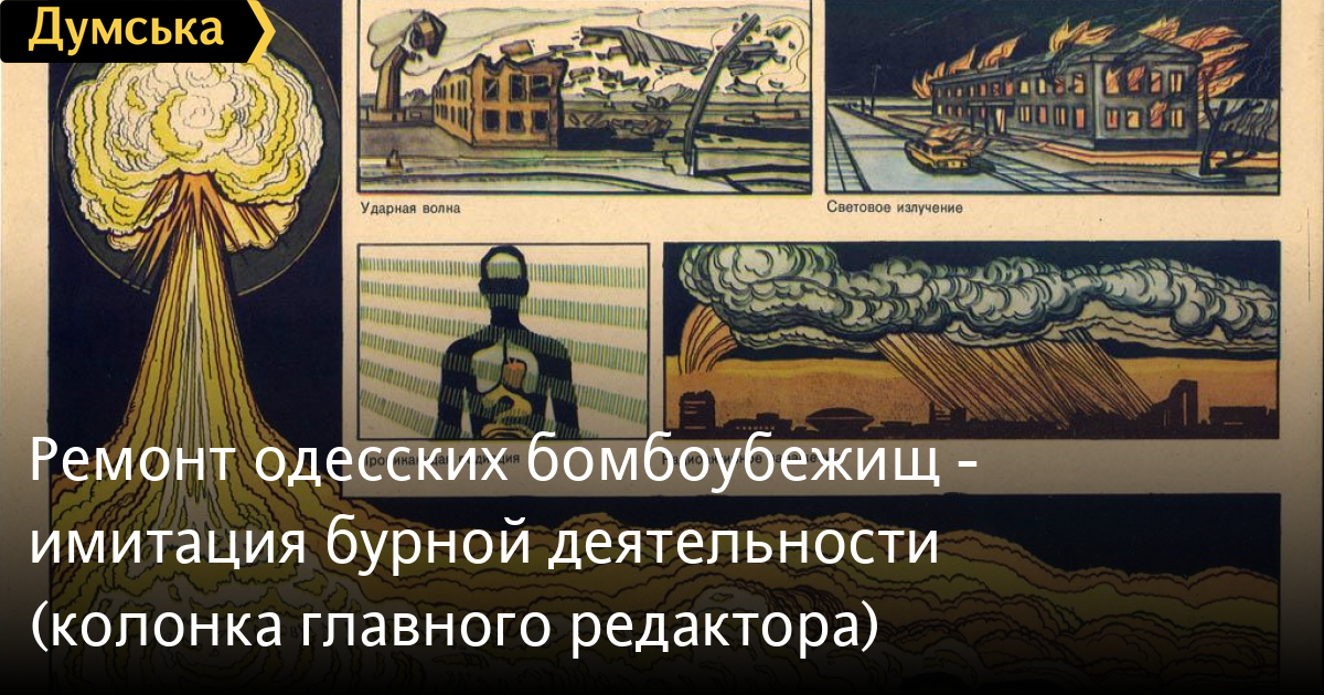 Последние несколько месяцев одесские коммунальные службы вместе с волонтерами усиленно приводят в порядок городские бомбоубежища. Подается все это под соусом «лучше перебдеть, чем недобдеть» — в смысле, сани, то есть убежища, надо готовить летом, то есть пока «брат» еще не у ворот. СМИ увлеченно освещают этот процесс, попутно поругивая власти, что, мол, довели систему ГО до ручки: в случае бомбежки рядовому одесситу и укрыться негде. Взяточники, на палю их!