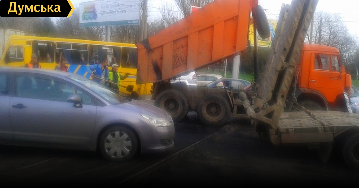 Ремонт дороги остановил движение транспорта на одесском поселке Котовского