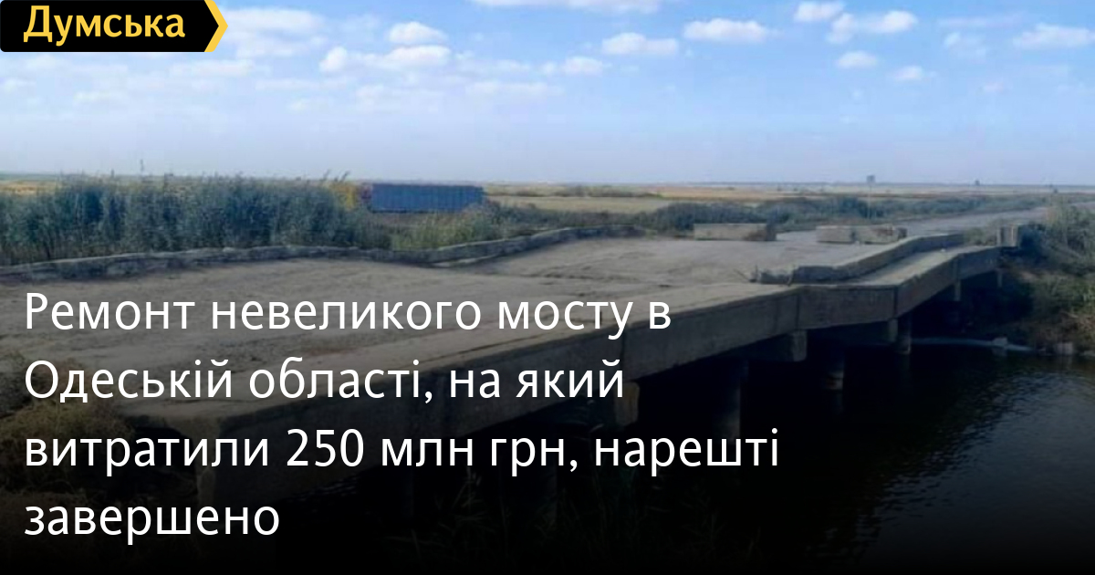 Ремонт невеликого мосту в Одеській області, на який витратили 250 млн грн, нарешті завершеноКапітальний ремонт мосту через канал Кофа на трасі Ізмаїл — Кілія — Вилкове завершено. Довжина об'єкта 33 метри, а витратили на нього 250 млн гривень. Як повідомили у Службі відновлення та розвитку інфраструктури в Одеській області, тут облаштували нові опори та прогонові балки, виконали армування та бетонування конструкції, зробили бар'єрне огородження, асфальтобетонне покриття на мосту та підходах до нього, нанесли дорожню розмітку, встановили дорожні знаки, провели роботи з водовідведення. Крім того, зміцнили узбіччя і зробили укоси. Міст, побудований у 60-ті роки минулого століття, тривалий час перебував в аварійному стані. При цьому він важливий для півдня Одеської області, оскільки з'єднує Ізмаїльський і Кілійський порти, і має велике значення для чотирьох громад Ізмаїльського району. У Службі відновлення та розвитку інфраструктури запевняють, що завдяки ремонту мосту та під'їзної дороги збільшиться пропускна спроможність траси. А маршрут від Кілії до Ізмаїла скоротився втричі (раніше дорога займала 140 км, а зараз 40 км.). Нагадаємо, що ремонт мосту робила компанія «Ростдорстрой», частина якої належить депутату Одеської міськради від «Довіряй ділам» Юрію Шумахеру. Зазначимо, що тендер на 213 млн грн вдалося провести з третьої спроби. Перші торги на 163 млн грн восени 2023 року не відбулися тому, що не було жодного учасника. Другі (на ту саму суму) — через те, що замовник припустився помилки в документах. З третьої спроби переміг «Ростдорстрой». У березні цього року на роботи виділили ще 38 млн грн. Раніше фірма освоїла 500 мільйонів гривень на ремонті іншої ділянки цієї ж дороги Т-16-07 Ізмаїл — Кілія — Вилкове. Міст визнали аварійним ще 2021 року. Тоді його перекрили, організувавши об'їзд. Водії великовантажних машин, однак, зрушили перепони і продовжували їздити через споруду. СМЕРТЬ РОСІЙСЬКИМ ОКУПАНТАМ! Помітили помилку? Виділяйте слова з помилкою та натискайте control-enter |