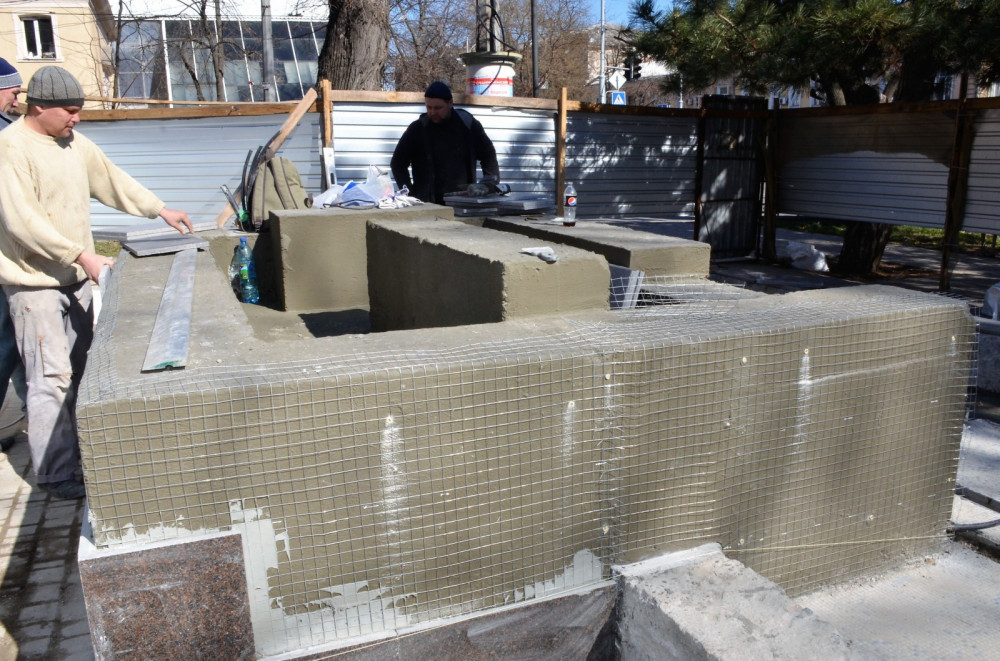 Начавшиеся осенью прошлого года работы все еще далеки от завершения. Как сообщает пресс-служба горсовета, на сегодняшний день отремонтировано техническое помещение фонтана, установлены насосы фильтрации и проложен трубопровод к чаше.