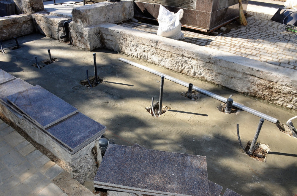«Проводятся работы по гидроизоляции чаши фонтана и облицовке ее гранитной плиткой», — говорится в сообщении.