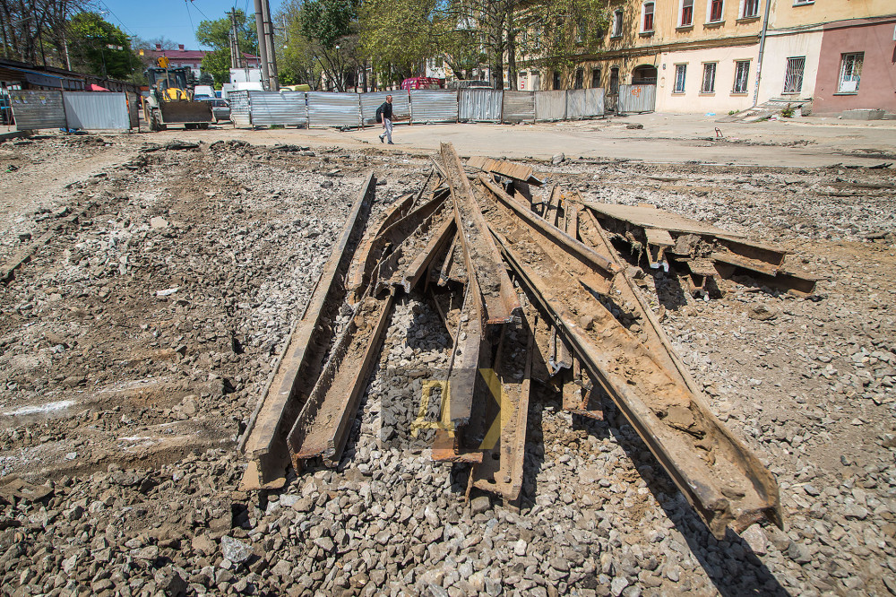 Как передает корреспондент «Думской», дорожники демонтировали все бетонные плиты и почти все рельсы, а специальная техника уже начала сдирать верхний слой асфальта.