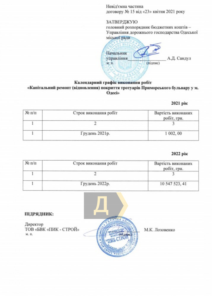 Напомним, тендер на ремонт Приморского бульвара выиграла компания ООО «СПК ПИК-СТРОЙ», совладелицей и директором которой является депутат горсовета от трухановской партии «Доверяй делам» Марина Лозовенко. Квадратный метр обновленного променада обойдется бюджету в 1665 гривен (общая сумма 10,5 млн гривен).
