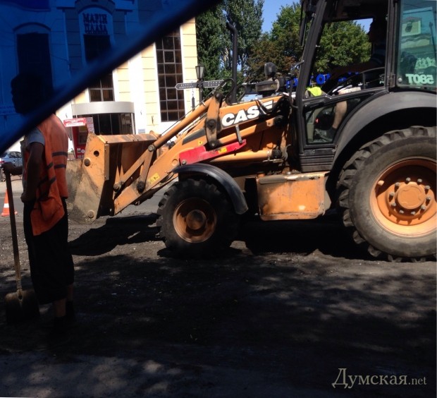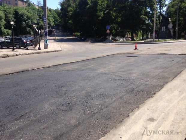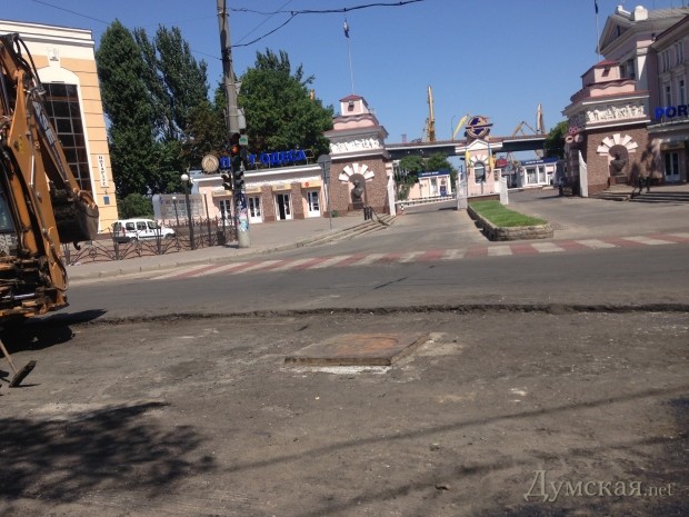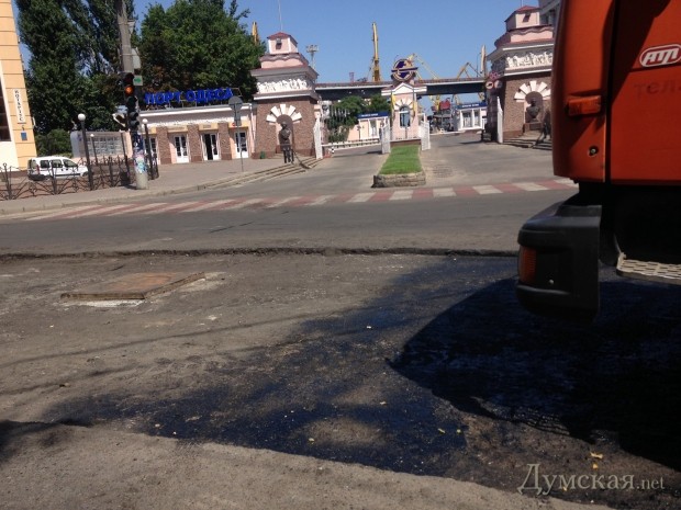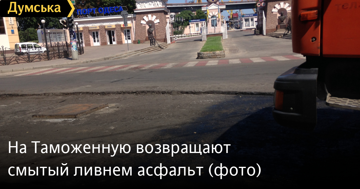 Дорожные службы в авральном темпе восстанавливают асфальтовое покрытие Таможенной площади, практически полностью уничтоженное ливнем 24 июля.